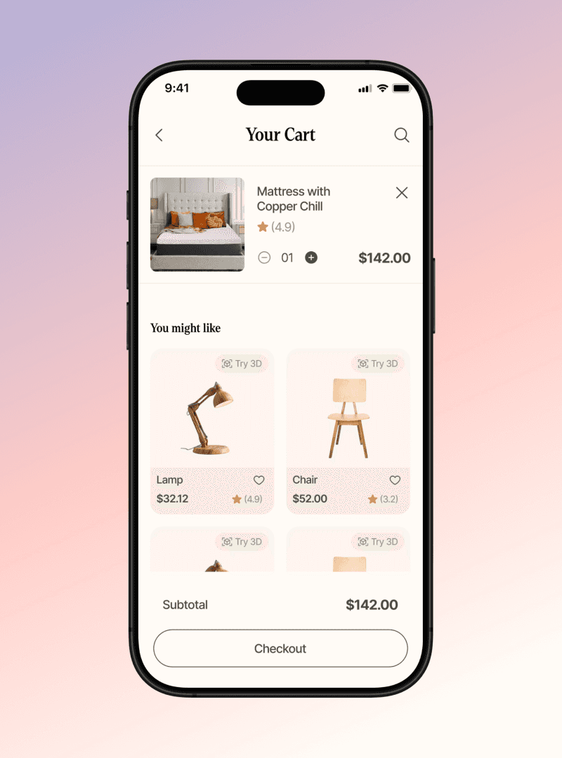 Incorporate an AR feature enabling users to place virtual furniture in real spaces via cameras, providing a preview.